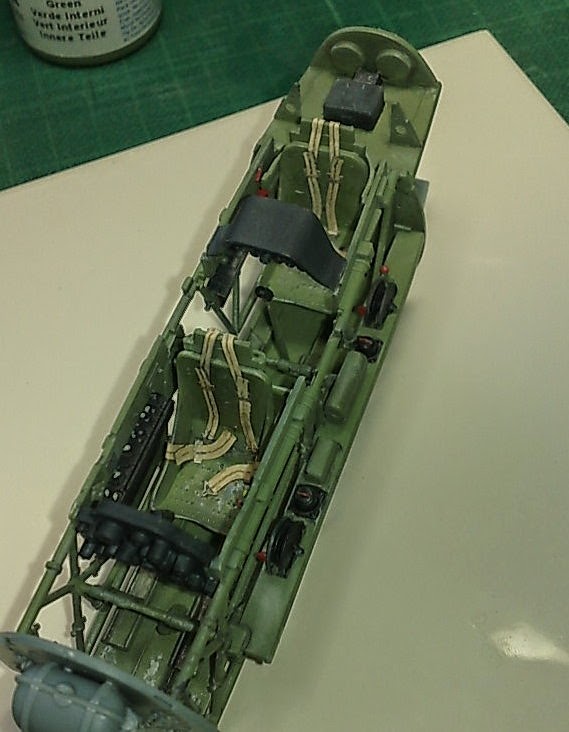 キャノピーは先端を機首上部に接着、計器板のバイザーから伸びるエッチングの支柱で支えますが、接着面積が足りないので、キャノピー先端付近にプラ板などベロをつけてあげるとよいと思います。